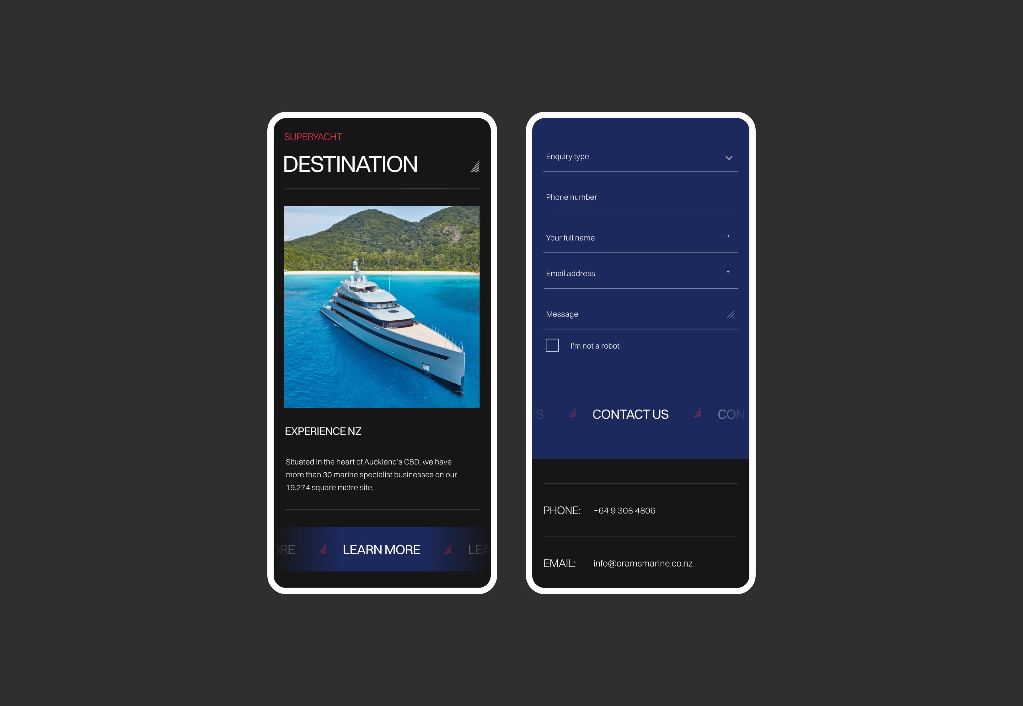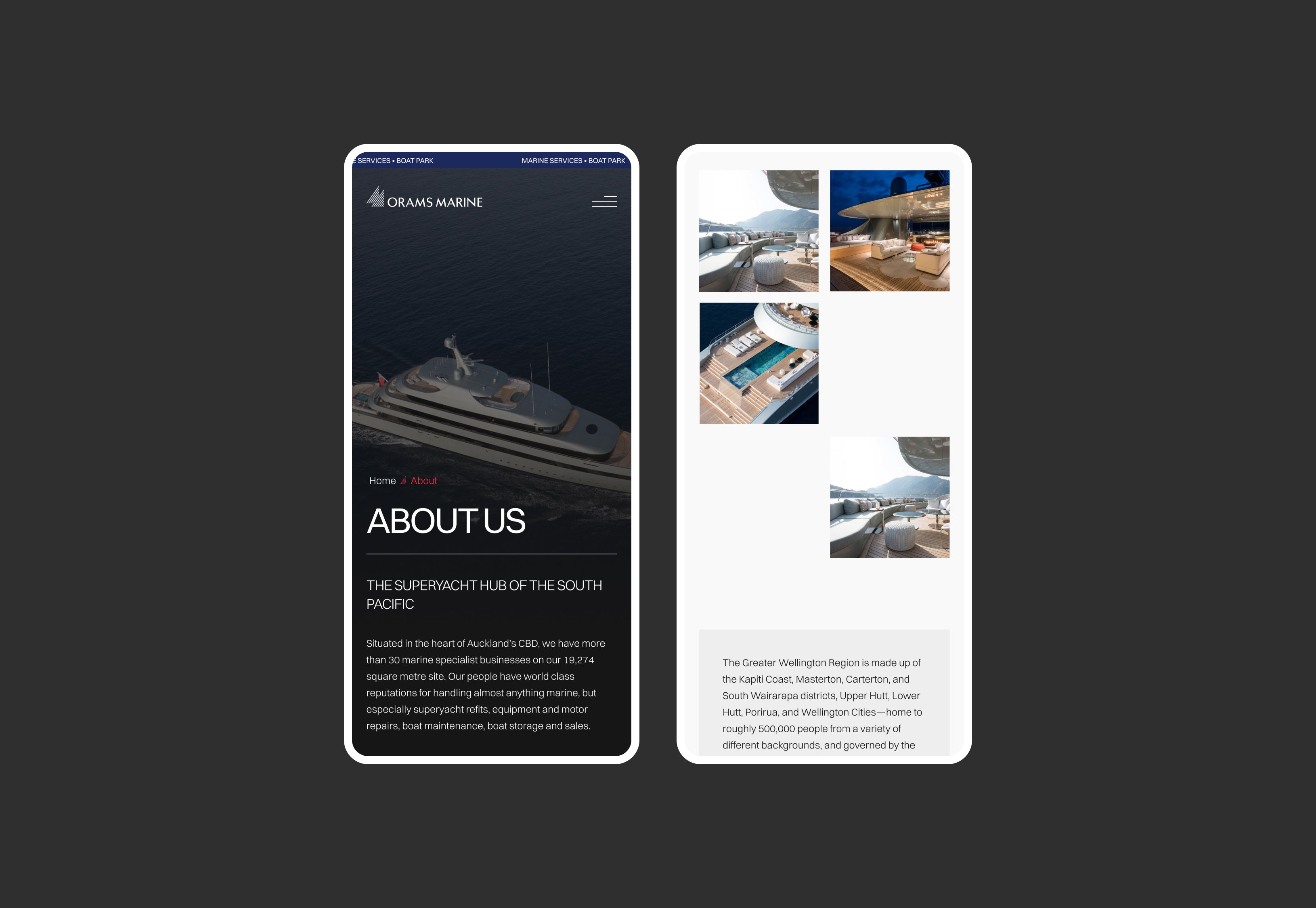 Orams Marine, a central Auckland hub, provides award-winning superyacht refit and repair services, offering multiple haul-out options and comprehensive services. The custom-designed website features page parallax, transitions, and custom animations to showcase the Orams brand’s excellence.