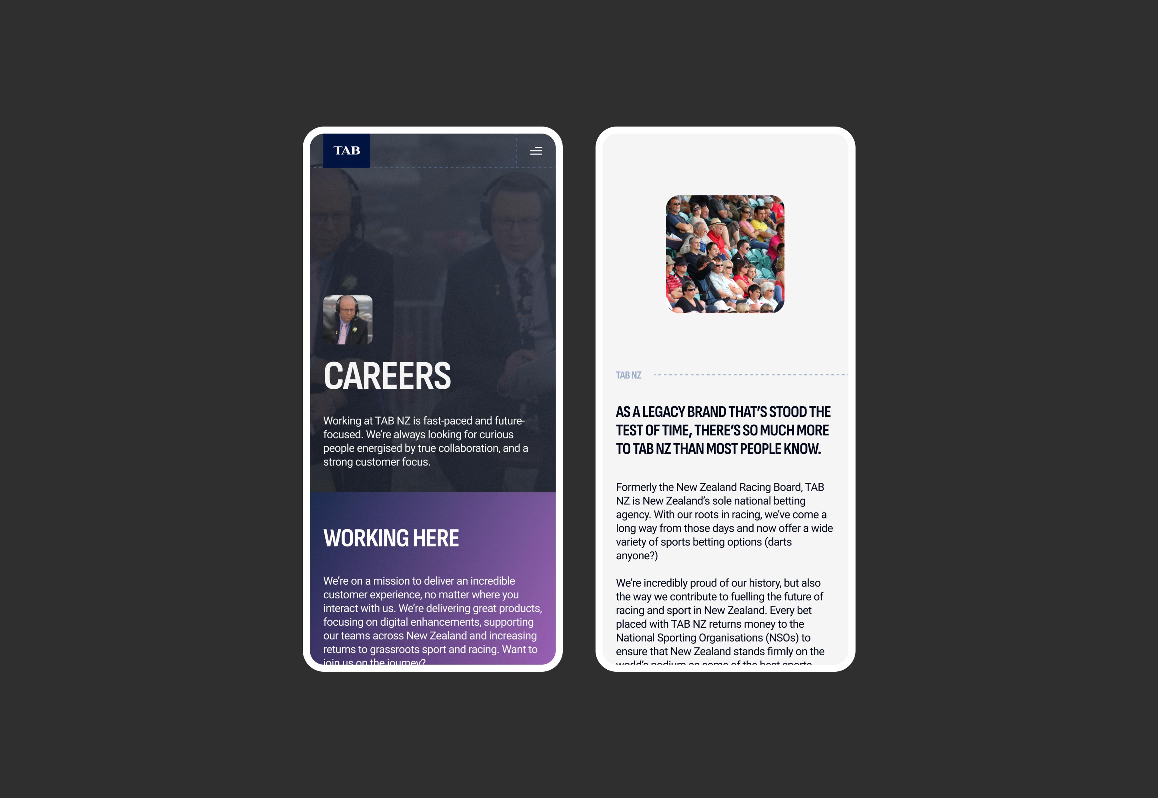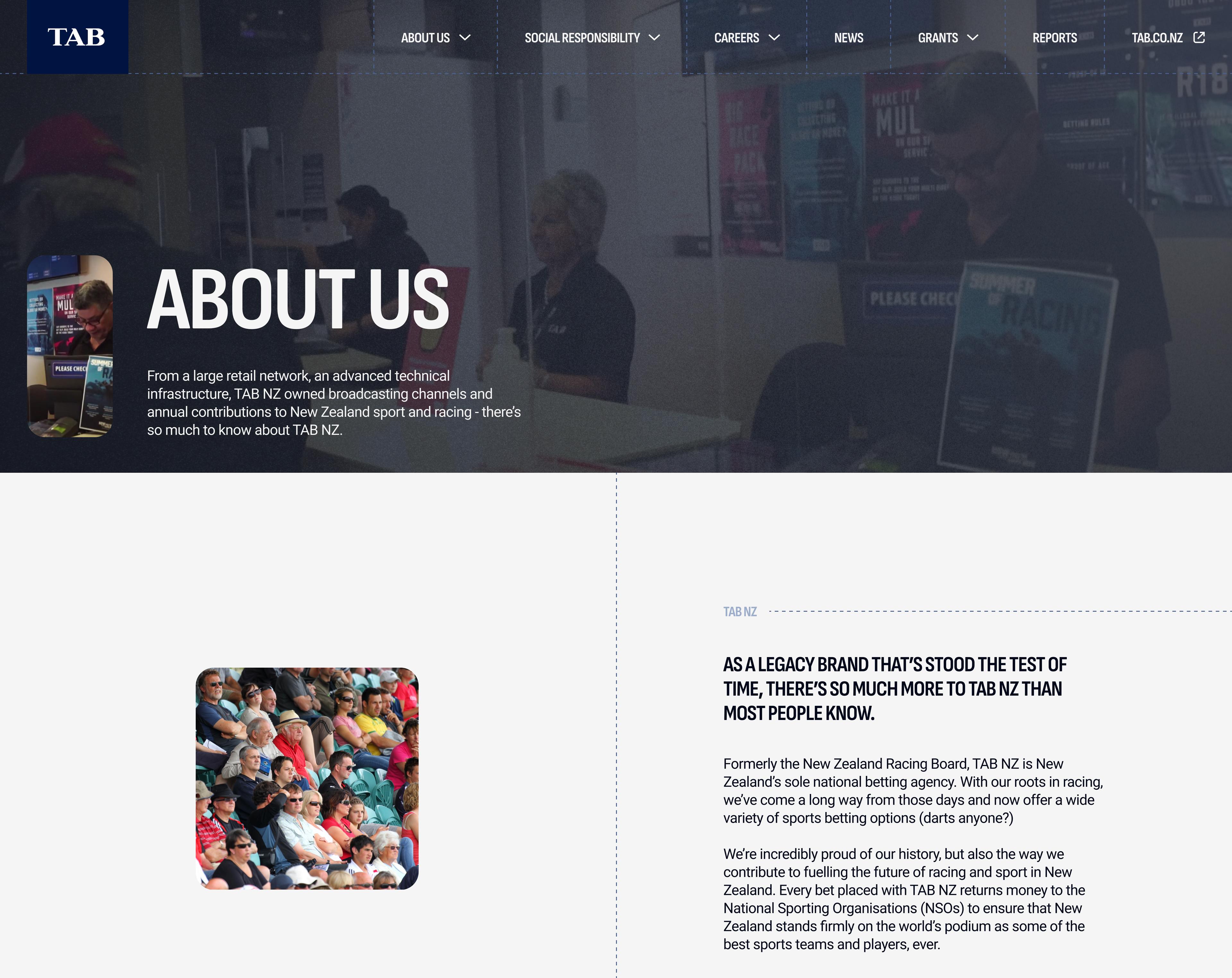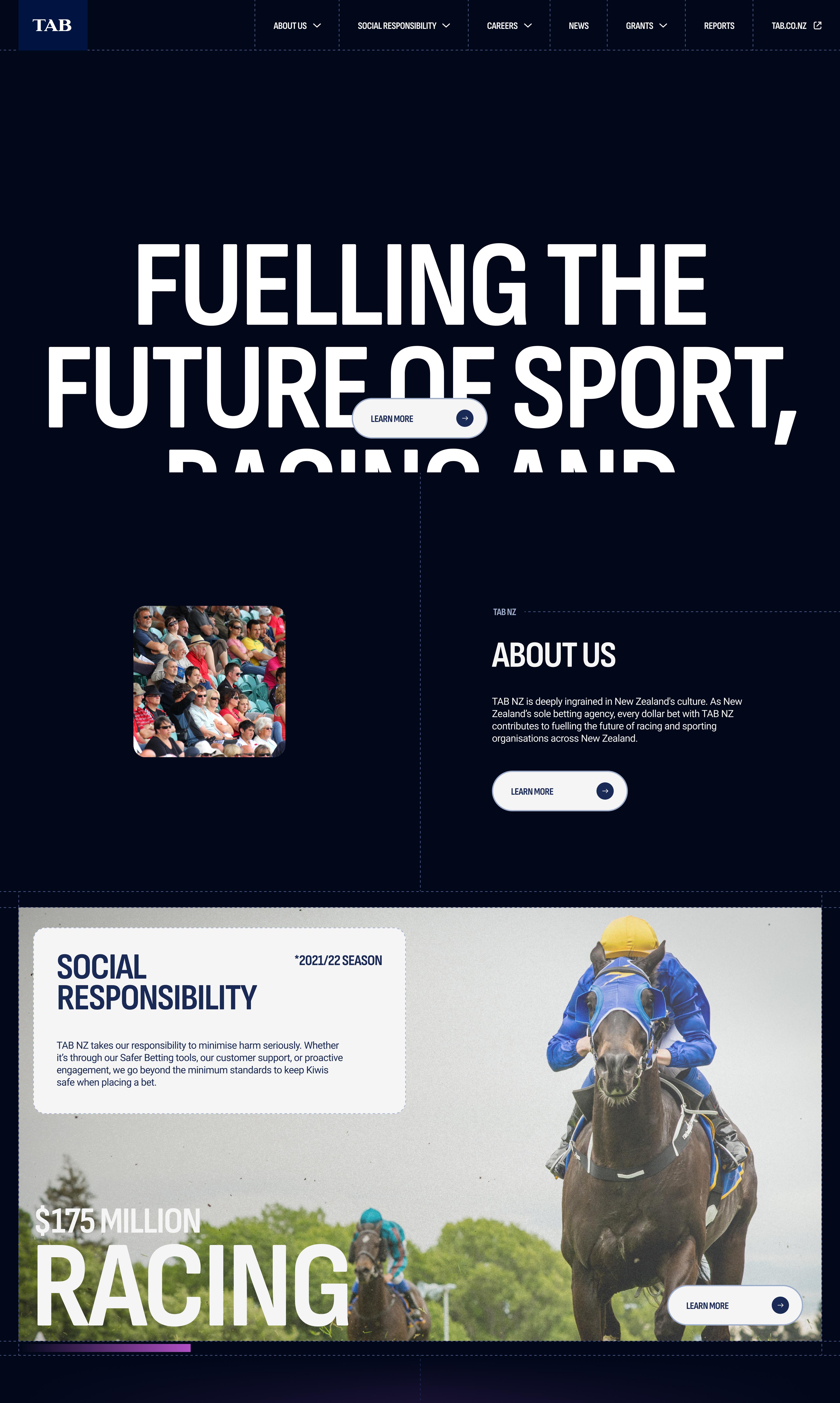 TAB New Zealand approached the team with the goal of redesigning their current website. I wanted to create an exciting web experience for their users. The brief was fairly open, an enhancement to pull the website from the early 2000s and create something modern and unique to the brand.