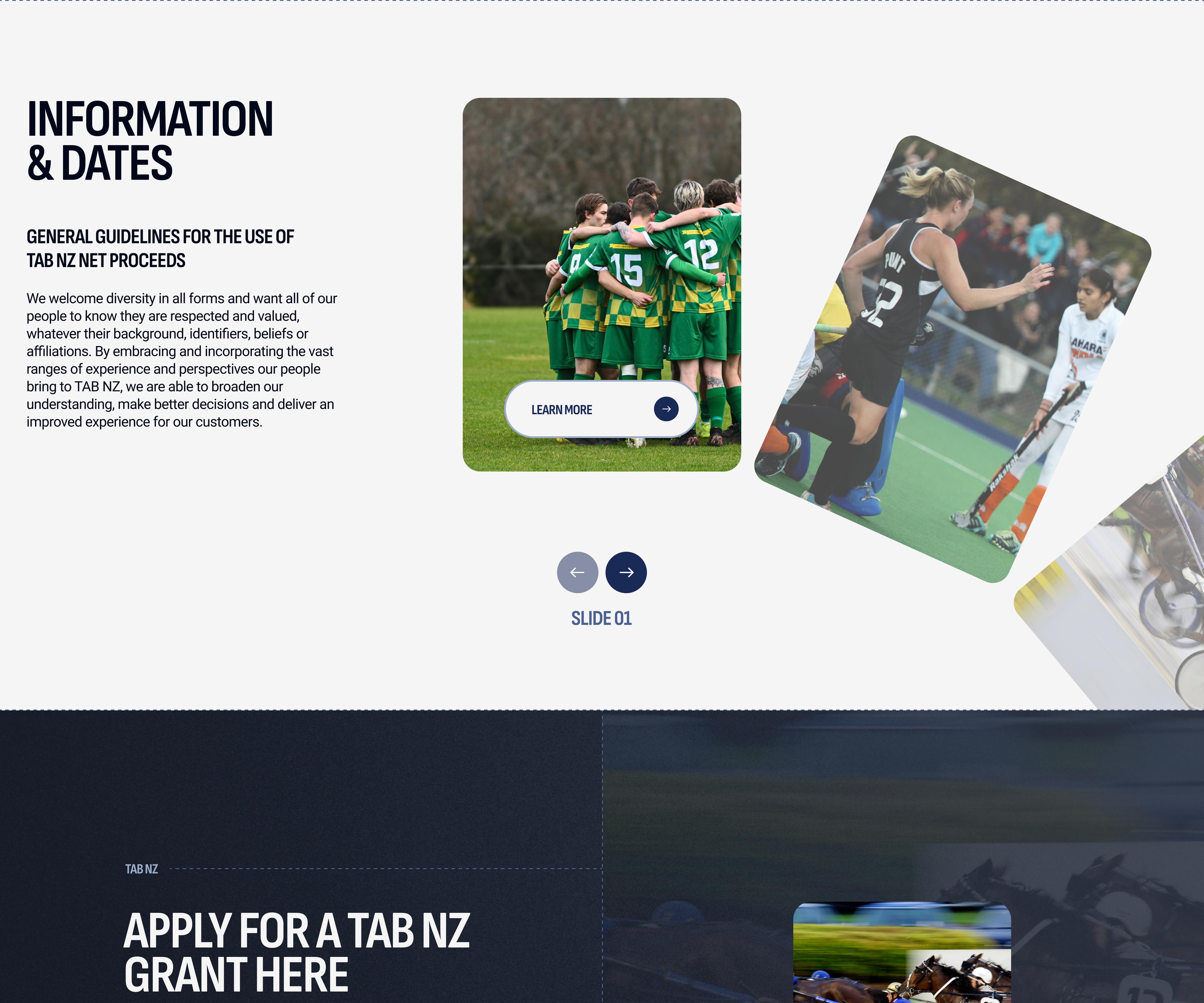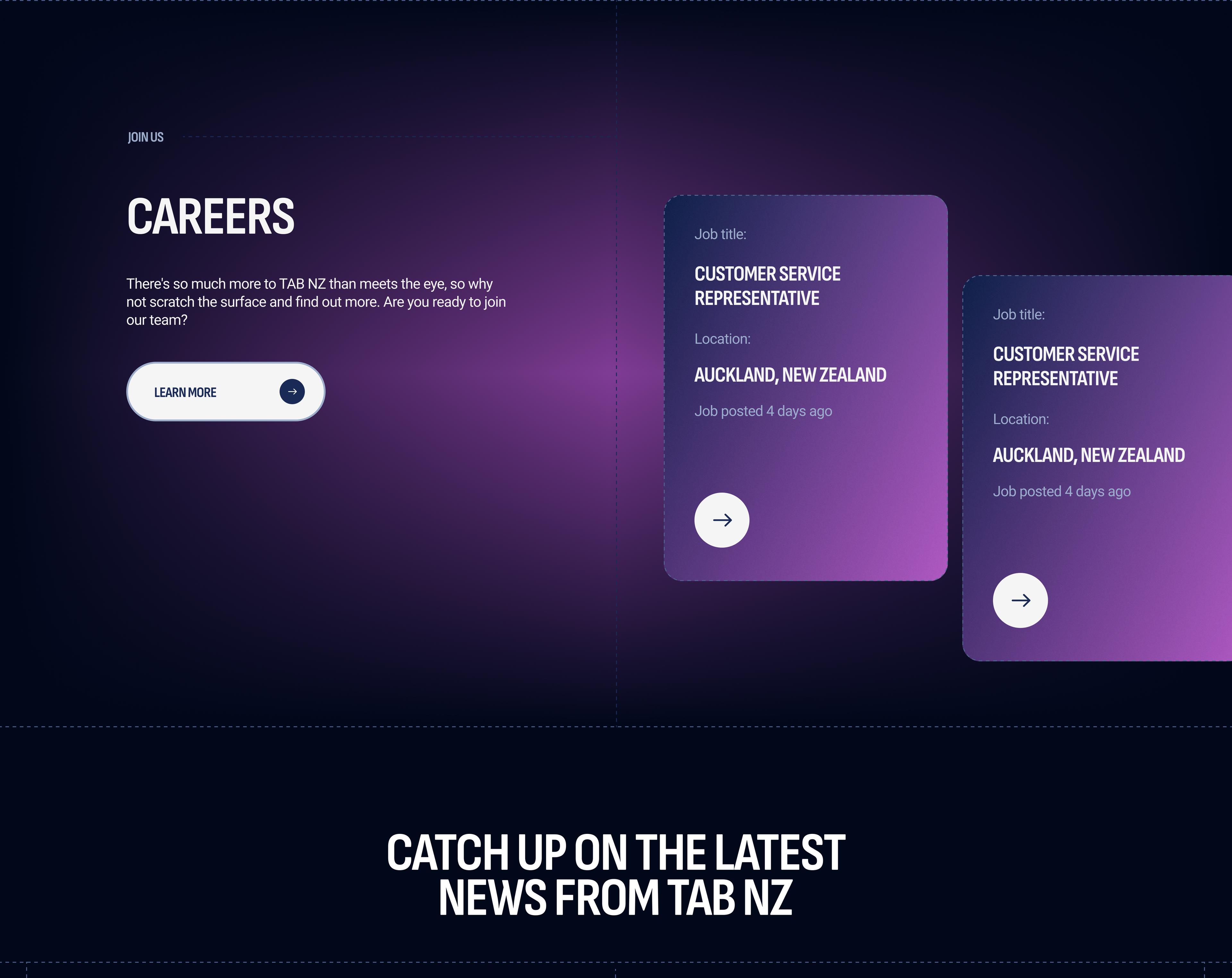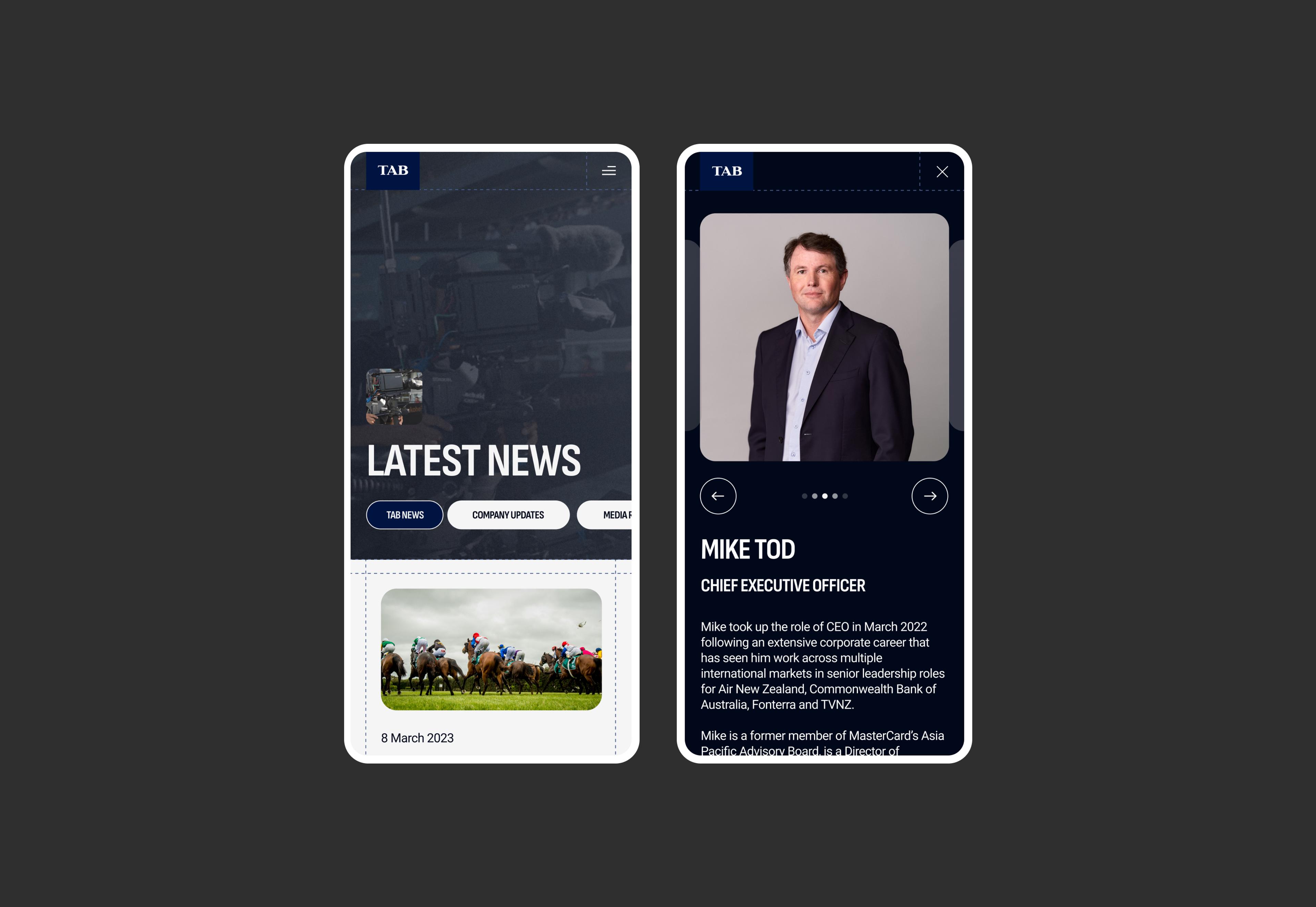 TAB New Zealand approached the team with the goal of redesigning their current website. I wanted to create an exciting web experience for their users. The brief was fairly open, an enhancement to pull the website from the early 2000s and create something modern and unique to the brand.