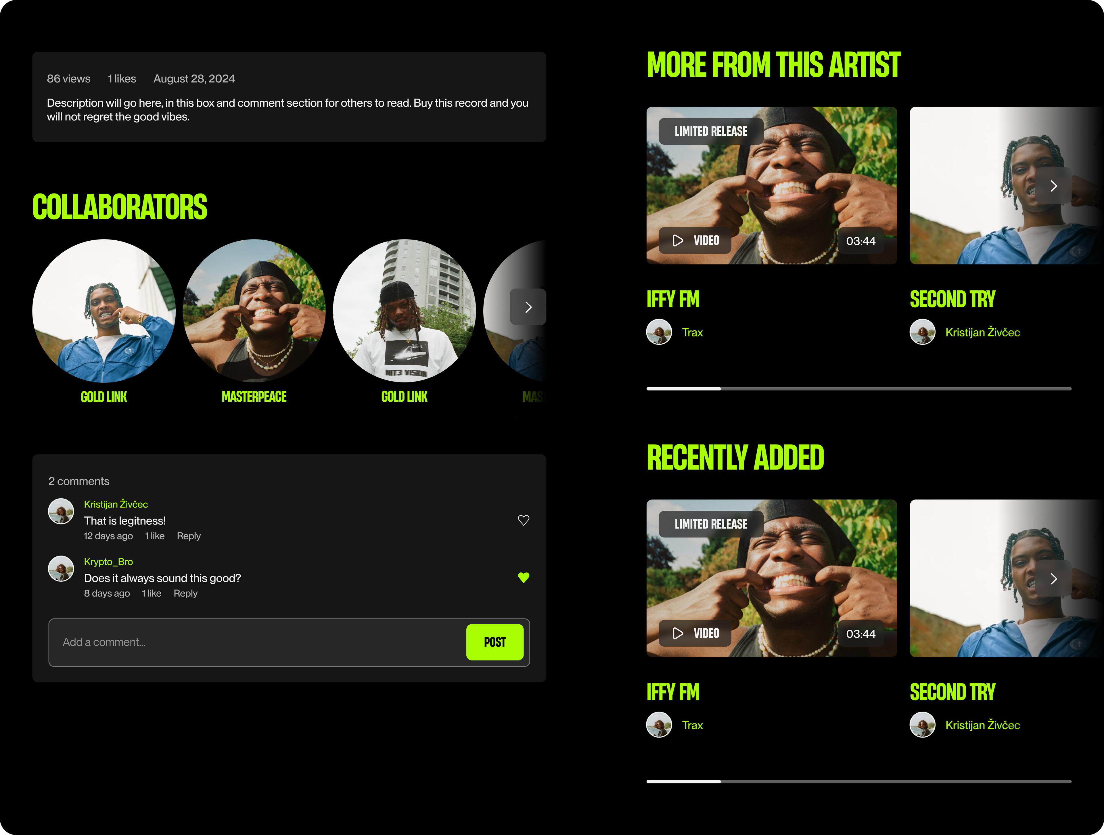 I was hired as a UX/UI Designer in collaboration with SLAPS Creative to refresh the music platform. SLAPS completed the branding and provided all assets for the new platform.