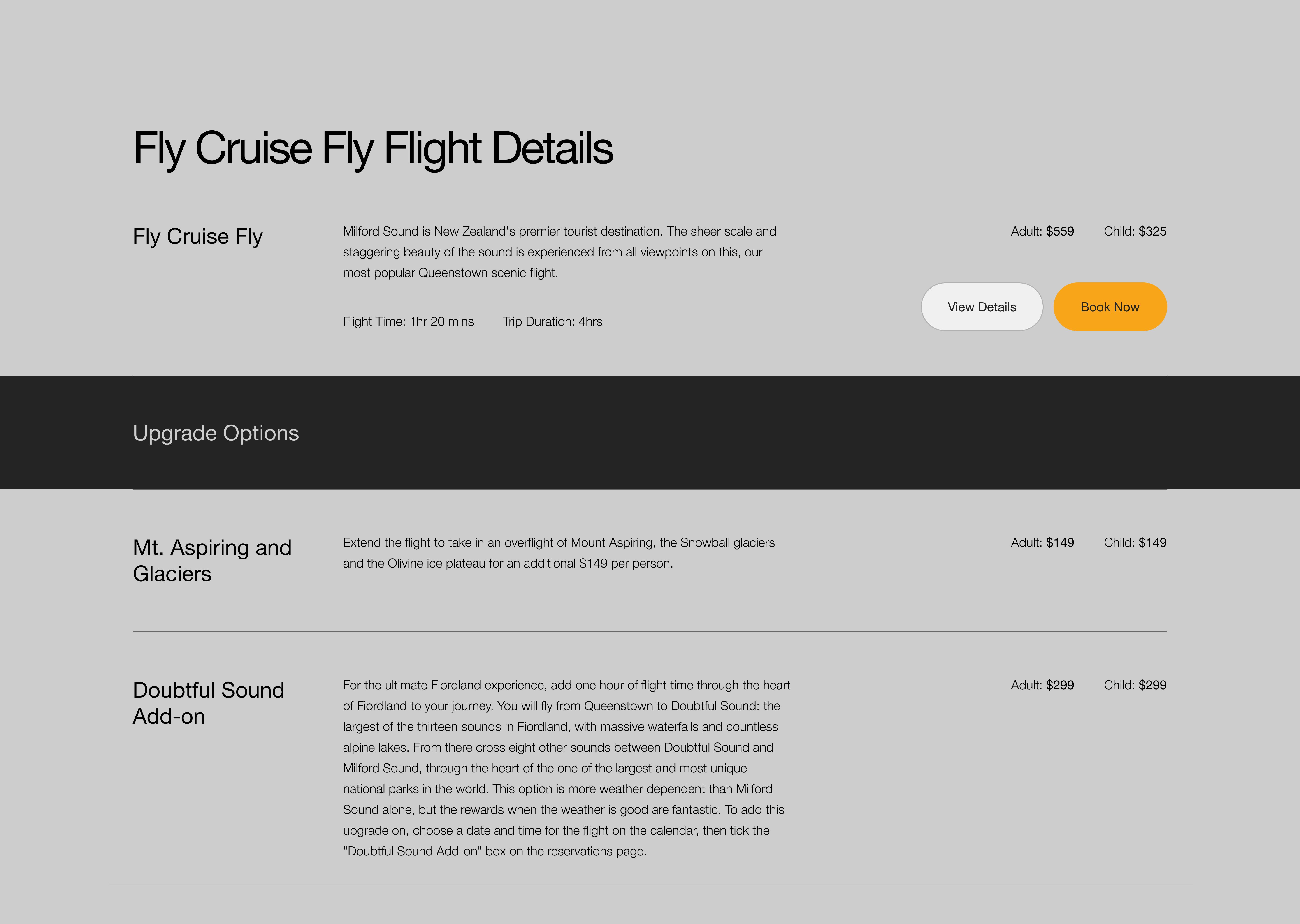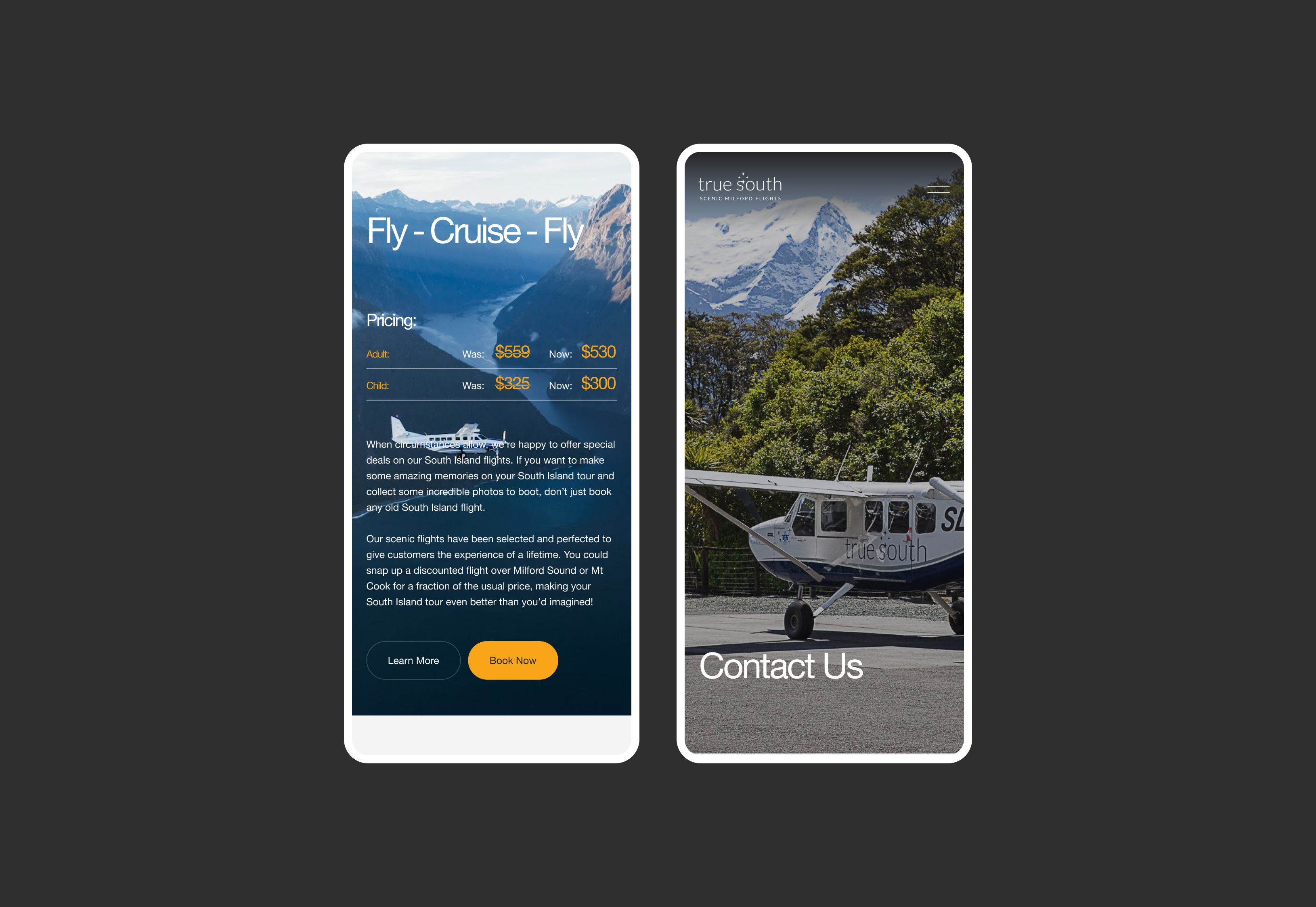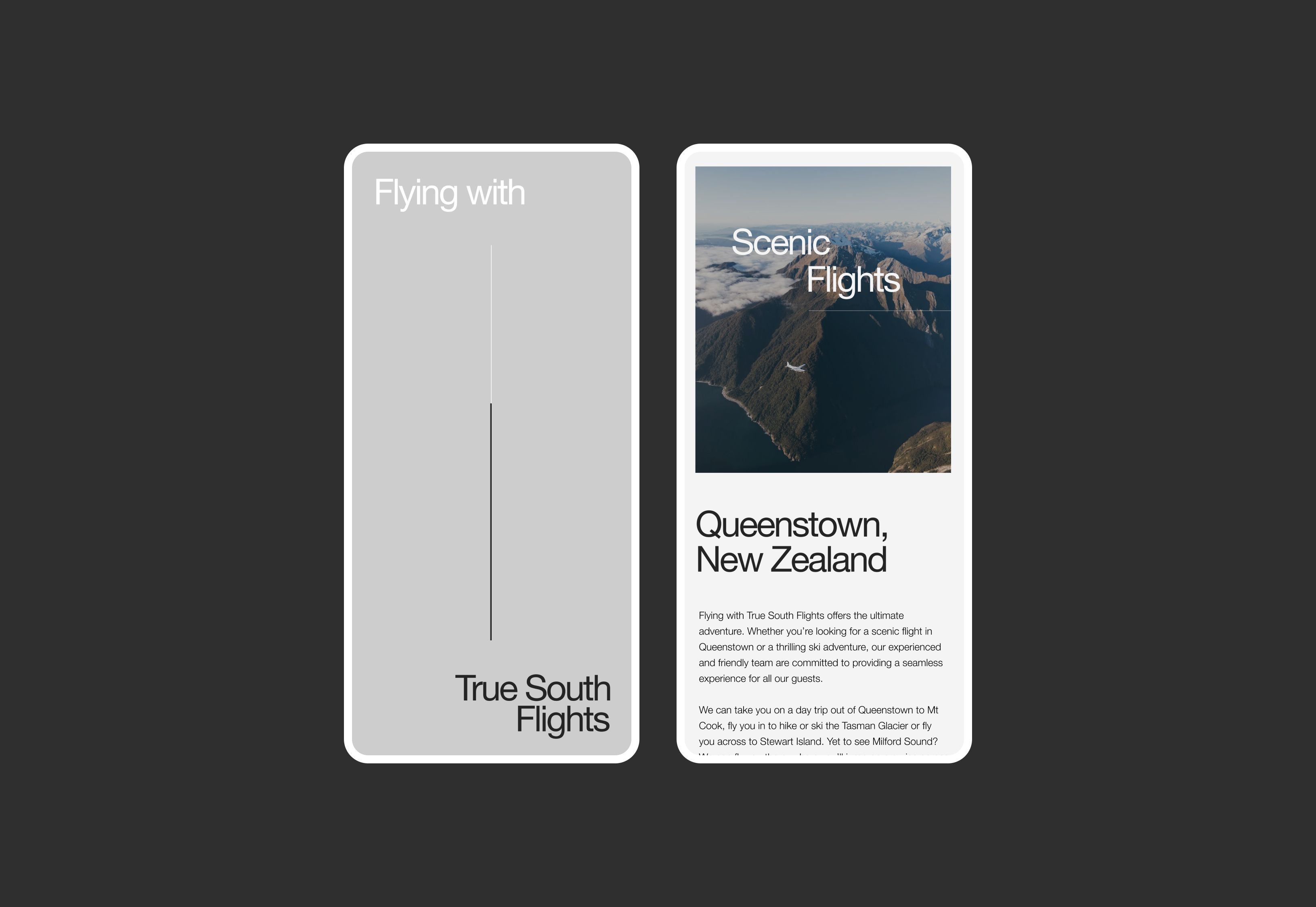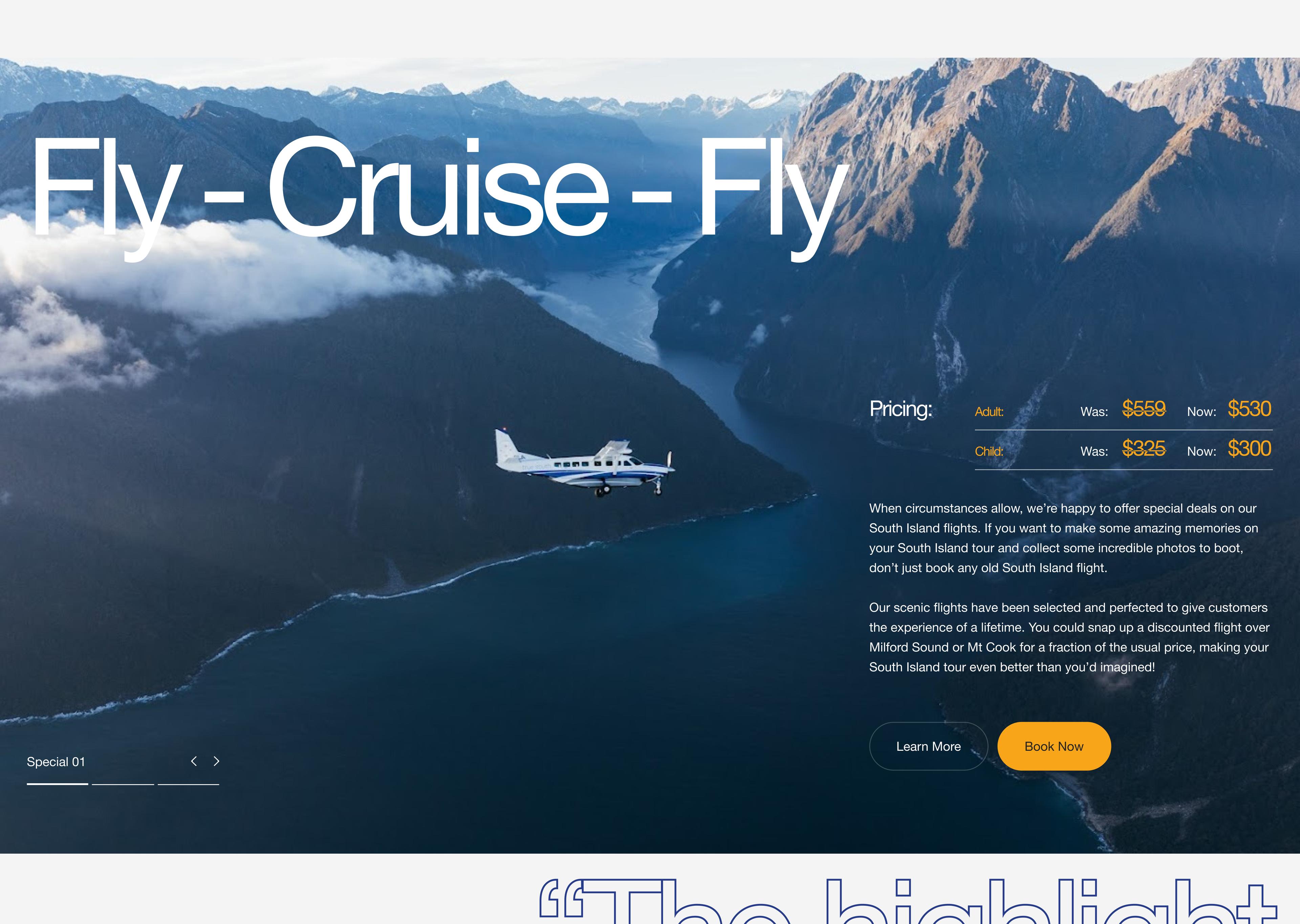 True South Flights, previously called Air Wakatipu, has been operating flights out of Queenstown Airport around Fiordland and Milford Sound since 2012. The team was approached to redesign their current website as the current site was outdated and lacked the excitement it needed.